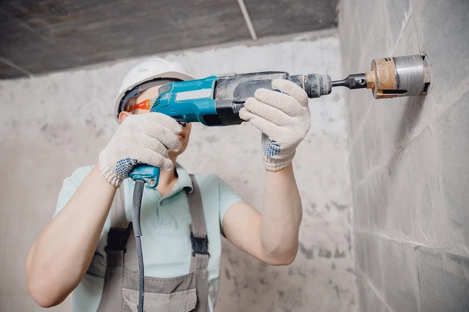 Вырезать нишу под электрощит. Коронкой нужного диаметра пробурите отверстия под монтажные коробки для выключателей и розеток, под распредкоробки. Проштробить каналы под электрокабели. Если нужно, продолбить отверстия в другие комнаты для прохождения проводки. Вычистить пыль из штроб, ниш и отверстий. Загрунтовать их праймером глубокого проникновения.